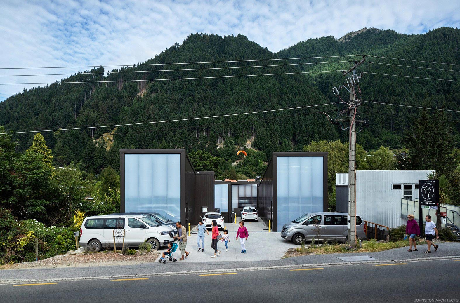 The Koura Apartments project successfully stands out in a town of numerous other short term rental accommodation options. The striking street frontages add life to the street with the use of translucent sheet transmitting movement and vitality. Clever use of the steep site and the composition of bold built forms means occupants enjoy beautiful versatile light filled spaces with privacy and peaceful views to the ravine.
